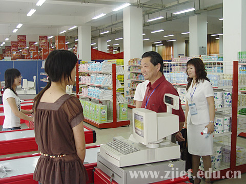 在供销超市实训基地、E都市梦工厂等学院生产性实践基地,各位专家现场与基地负责人、实验指导教师、学生相互交流,仔细询问基地建设和运转情况,了解设备仪器使用状况。