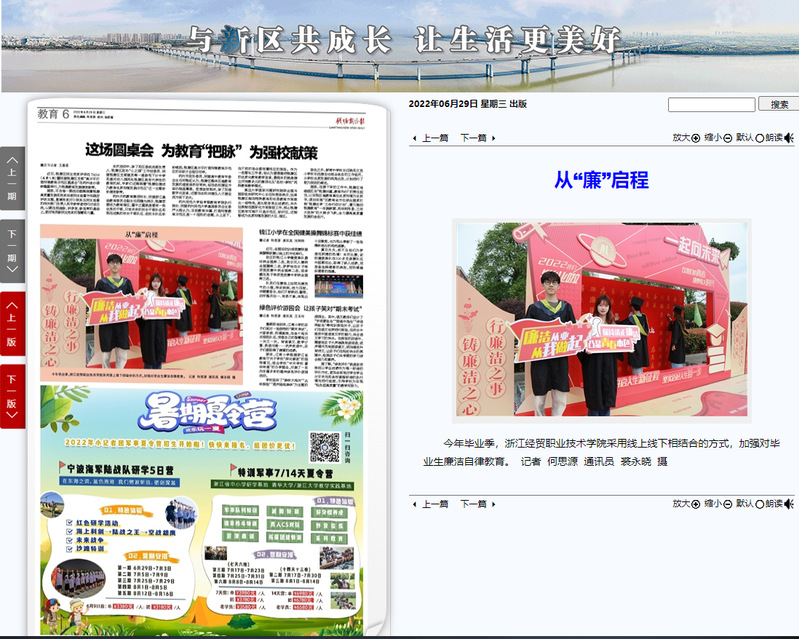 钱塘新区报:从“廉”启程