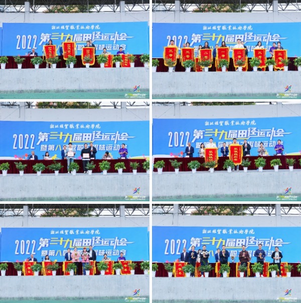 11月2日下午举行的运动会闭幕式上,学校领导为获奖集体和个人颁奖。学校党委书记劳赐铭代表学校党政领导和运动会组委会向获奖集体与个人表示热烈祝贺,向全体运动员、裁判员、教练员、工作人员以及师生校友表示衷心感谢。他表示,本届运动会是一次充满活力、彰显文明、激昂奋进的运动盛会,充分反映了我校体育事业蓬勃发展、教育教学水平不断提高的良好态势。希望全体师生牢记习近平总书记的嘱托,以此次运动会为新起点,以昂扬的斗志、崭新的姿态、饱满的激情谱写学校新一轮高质量发展的新篇章,为加快推进高水平职业大学目标而努力奋斗,为助力浙江“两个先行”、为全面建设社会主义现代化国家贡献“经贸力量”!