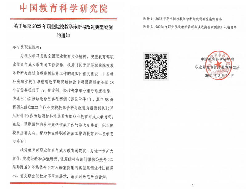 喜报!学校诊改工作案例入选全国职教诊改典型案例
