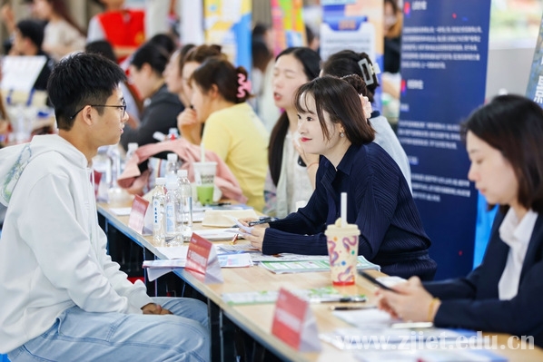 招聘现场气氛活跃,还专门设置了人才政策指导、校企合作洽谈区、基本医疗保险、法律咨询及就业指导服务体验营等特色活动。不少参会企业早早地来到现场,与各二级学院相关负责人交流用人需求,洽谈校企合作意向。就业指导服务体验营开设了“AI简历在线”“校友话就业”“导师面对面”等体验项目,邀请了浙江省大学生就业创业导师团、杭州师友计划导师、高校就业创业导师等专家现场坐诊咨询,为毕业生提供就业见习、人才政策、求职技巧、职业生涯规划、创新创业等方面的咨询服务,帮助毕业生厘清就业形势,引导毕业生树立积极求职心态,提升毕业生的求职技能和职业生涯规划能力。