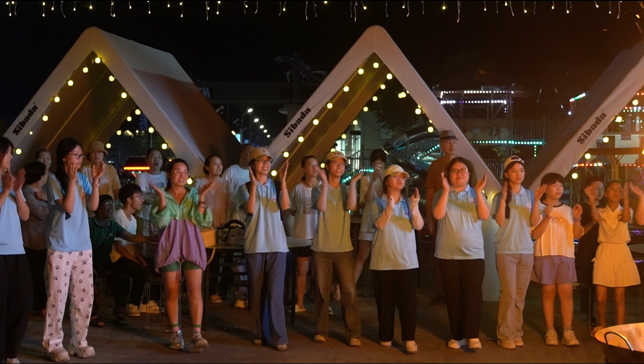 当《下姜村,梦开始的地方》生态景区演出拉开帷幕,在灯光与山水交融间,演员们化作流动的生态符号,重构人与自然的和谐联结。志愿者们加入篝火晚会共舞,在碧波畔演绎“只此青绿”古典舞,用舞姿诉说生态守护的青春宣言。此外,服务队还向村民普及千岛湖氢山泉优势,推介“千城万店”创业计划,为乡村发展拓宽路径。